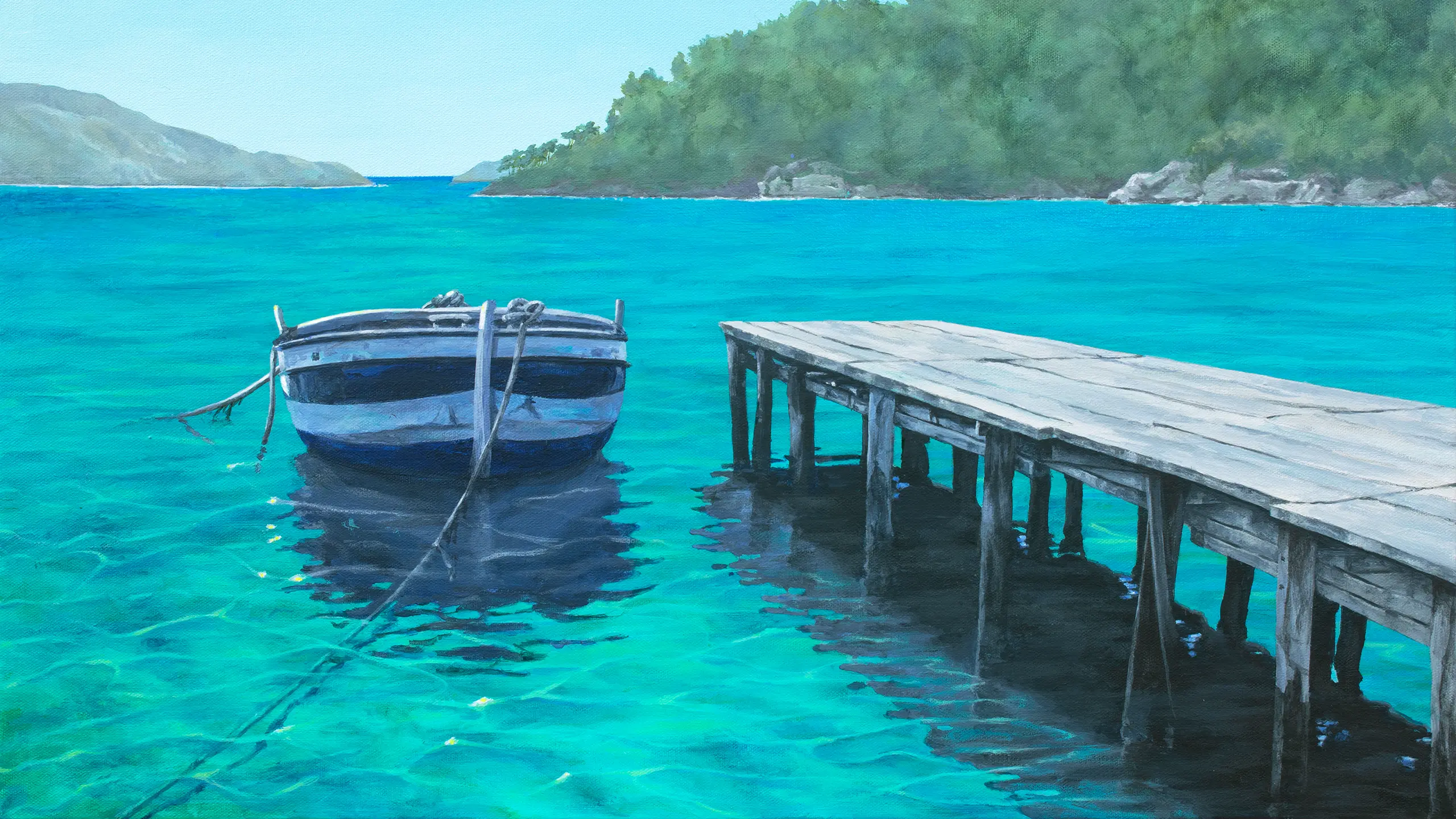 I love the vivid colours of the houses and boats of Greece and also the amazing light and beautiful shades from the Mediterranean which I try to reflect in my paintings. Cobolt Turqouise is my favourite colour in my palette!